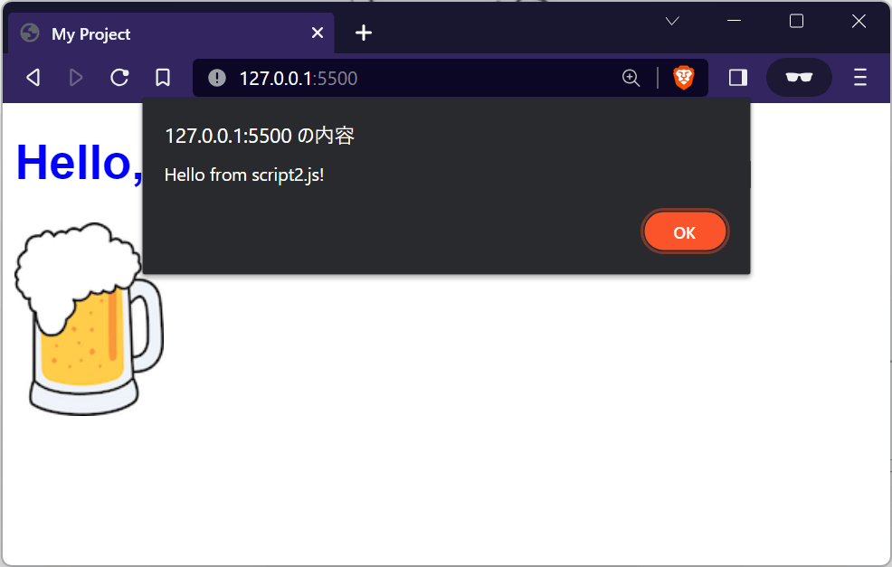 また、もう一つのjsファイルであるscript.2.jsからモジュール化された関数をインポートして実行しています。